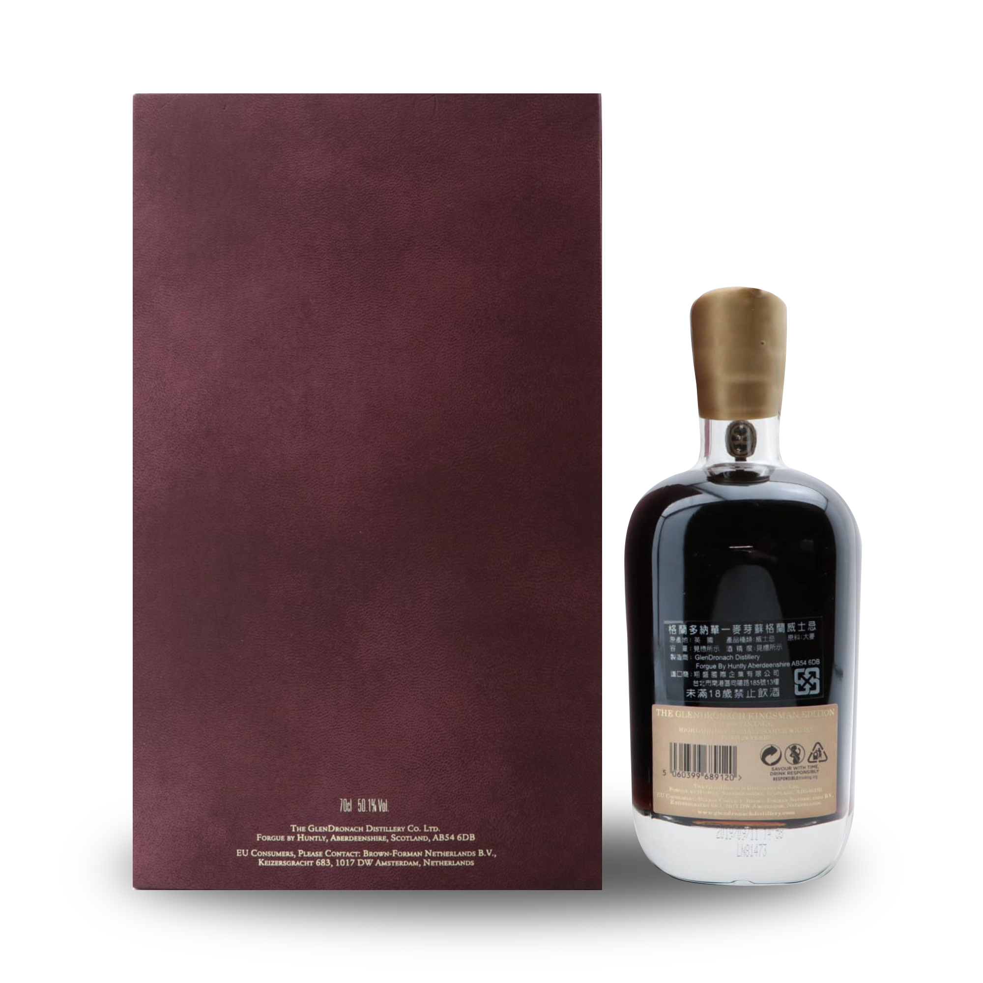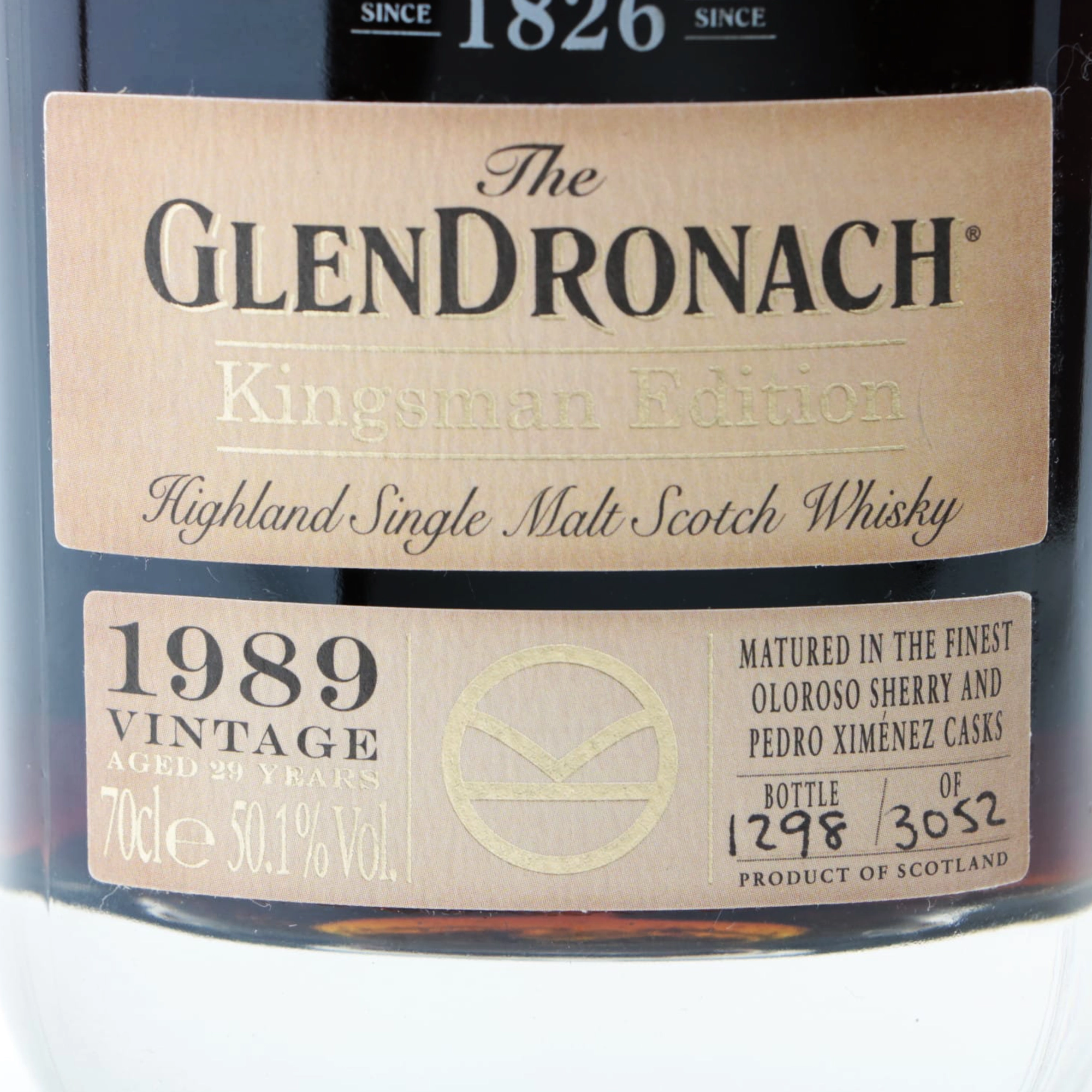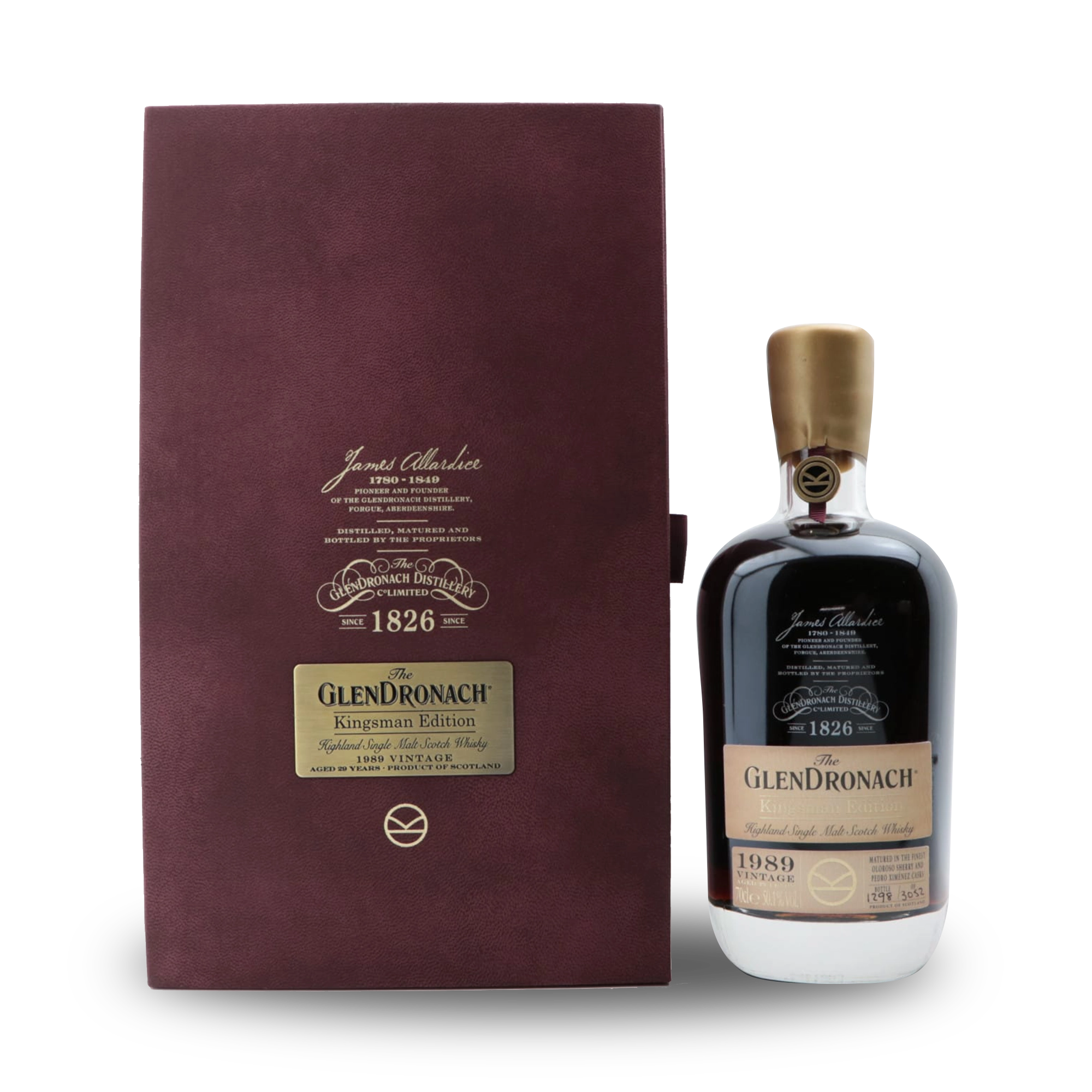 GlenDronach 1989 Kingsman Edition 29 Year Old GlenDronach Kingsman Edition is a rare 29 year old single malt Scotch whisky from GlenDronach Distillery. This special release celebrates the partnership between the historic distillery and the Kingsman film series. The whisky was distilled in 1989 and matured for 29 years in oak casks. During this long maturation, the spirit slowly gained depth and character. As a result, the whisky developed a rich colour and complex flavour profile. Long ageing also allows the oak to shape the spirit in a balanced way. Collectors often look for special releases like GlenDronach 1989 Kingsman Edition. The age statement, limited availability and connection to the Kingsman series all increase its appeal. Sherry Cask Influence GlenDronach has built a strong reputation for sherry cask maturation. The distillery carefully selects oak casks that previously held rich Spanish sherry. These casks add sweetness, spice and depth to the whisky. Because of this maturation style, GlenDronach whiskies often show bold and full-bodied flavours. In addition, the long ageing of GlenDronach 1989 Kingsman Edition allows those flavours to develop even further. Over time, the whisky gains layers of fruit, chocolate and spice. Aroma and Flavour The nose opens with rich aromas of dried fruit and dark chocolate. Notes of raisins and figs appear first. In addition, hints of sweet sherry and polished oak add warmth and complexity. The palate is smooth and full of flavour. First, dark berries and caramel appear. Afterwards, roasted nuts and cocoa develop. At the same time, gentle spice adds balance and structure. The oak influence remains present but never overwhelms the spirit. Instead, it supports the deep fruit character that GlenDronach fans enjoy. Long and Elegant Finish The finish is long and warming. Soft oak and dried fruit linger on the palate. Finally, subtle spice and dark chocolate appear at the end. Because of its age and rarity, GlenDronach 1989 Kingsman Edition attracts collectors around the world. Whisky enthusiasts also value the connection to the Kingsman film series. Overall, GlenDronach 1989 Kingsman Edition offers a rich and luxurious drinking experience. The whisky combines long maturation, sherry cask influence and collectable appeal. As a result, it stands as a memorable release from one of Scotland’s most respected whisky distilleries